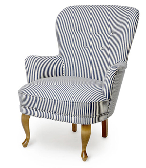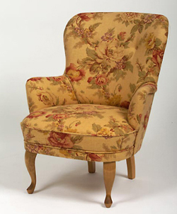 Mia är en klassisk fåtölj som kan fås med helveckad kappa, slät kappa med motveck i hörnen eller utan kappa. I Miakollektion finns även fotpallar: Fotpall till Mia och soffor: Mia soffa