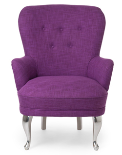 Vårt senaste tillskott är Mia fåtöljen i tyg Atalante färg 51 lila. Nedan med aluminiumben, helgjutna och handpolerade i Sverige. Går även att få med träben i samtliga färger.